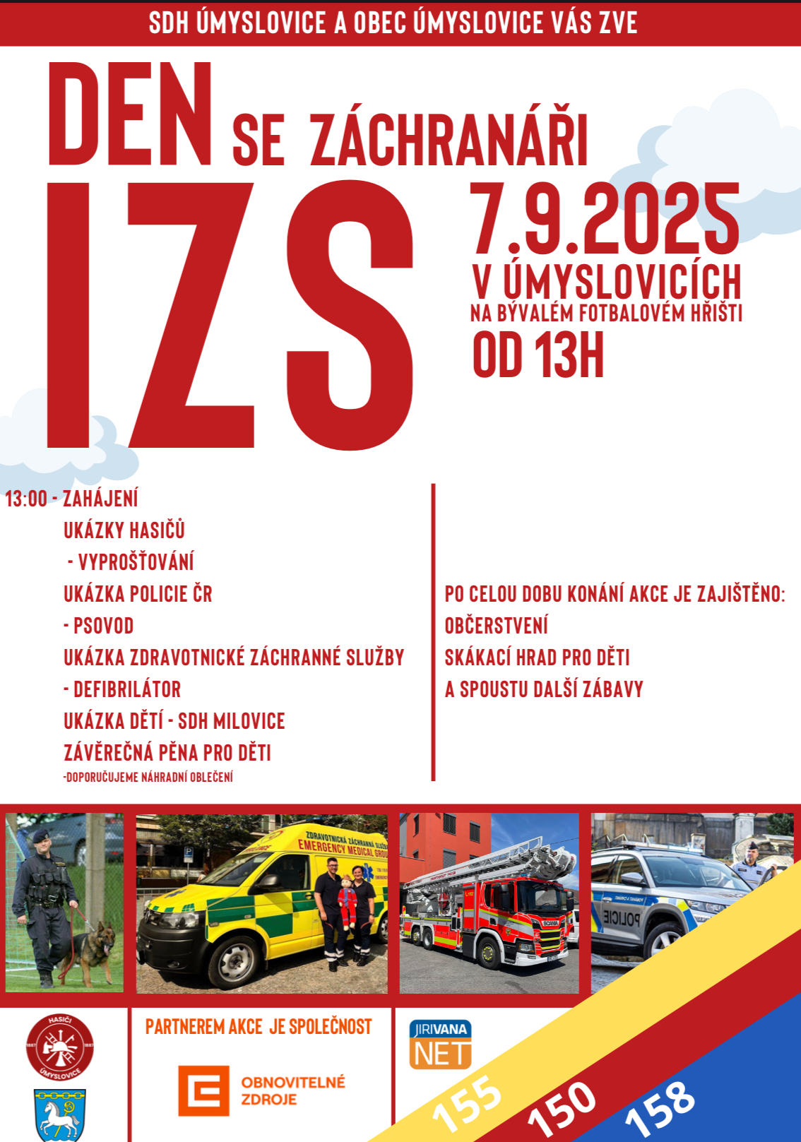 Srdečně Vás zveme na krasnou akci se záchranáři. V neděli 7.9. od 13:00 v Úmyslovicích.